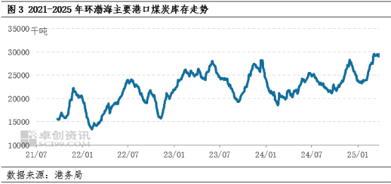 煤矿产量整体高位,仅3月有阶段性收紧。据国家统计局数据,2025年1-2月份全国原煤产量7.7亿吨,同比增7.7%,增速比上年12月份加快3.5个百分点;日均产量1297万吨。全国原煤产量整体保持在高位水平,实现同比宽幅增长,供应充裕,且春节后煤矿复产进程较快,致使2月煤价出现大幅度下跌,2月榆林地区Q6000大卡动力煤主流市场价格均价环比1月跌幅达到9.6%。但进入3月后,前半段受国内重要会议影响,煤矿生产多保安全意识较浓,生产谨慎,部分民营煤矿主动开展设备检修或搬家倒面工作,产地供应存在阶段性收紧现象,形成煤价跌后反弹的基础。
