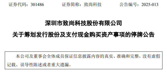 在停牌期间,致尚科技承诺将严格履行信息披露义务,按监管要求推进尽职调查、方案论证等工作。