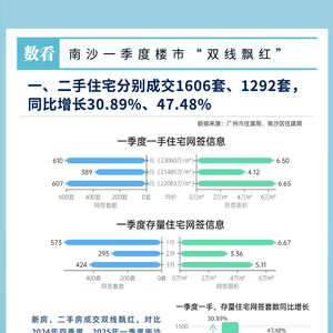 数据显示,一季度南沙楼市新房、二手房成交双线飘红。