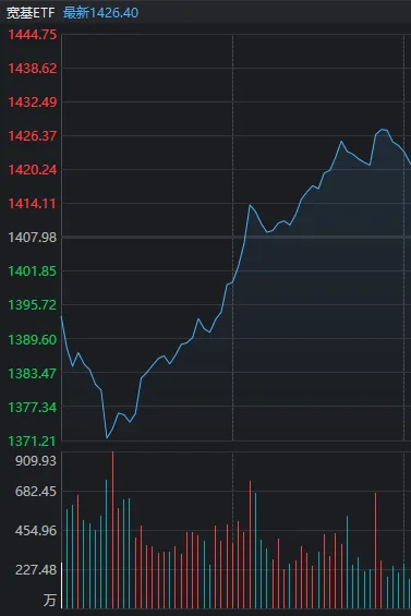 以同花顺“宽基ETF”指数为例,其全天成交额录得715.6亿元,比前两天明显缩量。但在早间指数触底回升的时段,该指数仍出现了持续的大笔买盘。
