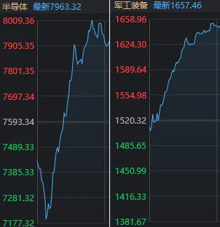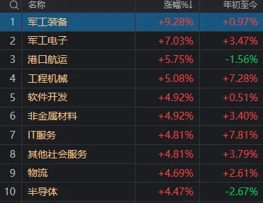 板块方面,军工、免税、港口、半导体等板块涨幅居前,银行、保险等少数板块下跌。
