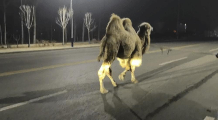 骆驼深夜“离家出走”,济南警方陪它驼速行进找主人