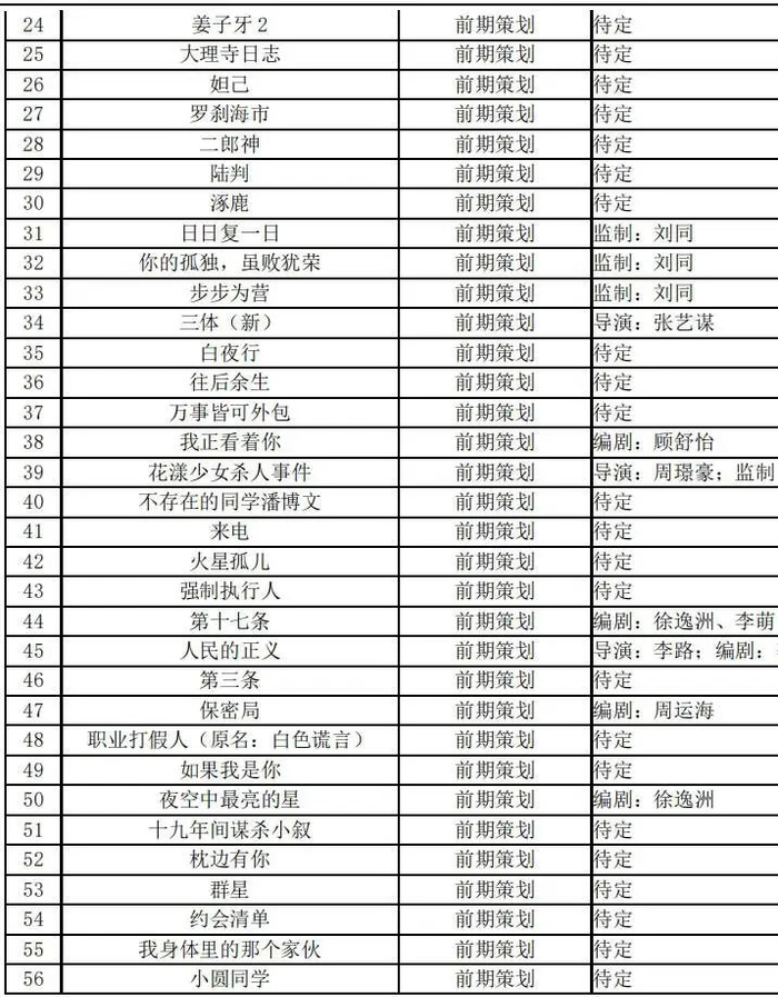 另外,“前期制作”的电影有37部多,其中包括《西游记之大圣闹天宫》《二郎神》《罗刹海市》《妲己》等等与传统文化结合的动画电影。还有和张艺谋合作的《三体(新)》,也是令人期待。