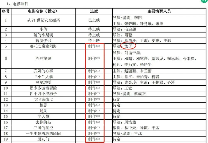 此外,截止去年6月,光线传媒“制作中”的电影多达15部。饺子导演的《哪吒2》、邓超等主演的《胜券在握》、赵丽颖等主演的《乔妍的心事》等作品已经上映。其他的一些作品,比如《大鱼海棠2》也是令人期待。