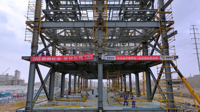 面对复杂施工环境,天宏多晶硅项目创新性实施“区域网格化+模块化”管理模式。通过将冷氢化、渣浆高沸、硅烷变电所、全厂工艺管廊等13个装置划分为不同的施工网格,实现设计、采购、施工一体化全链条联动;针对受其他装置施工影响的主管廊,突破传统线性作业局限,采用工厂预制、现场拼装的模块化施工方式,钢结构预制率达40%,较传统施工缩短工期20天,探索出一条大型化工项目高效建造新路径。