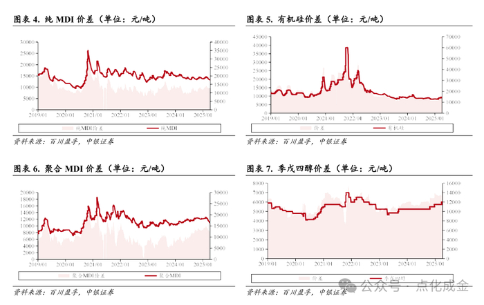 进出口关税方面,美国总统特朗普于当地时间4月2日正式宣布对全球加征“对等关税”,其中包括对中国实施34%的“对等关税”。我国发布反制行动,对原产于美国的所有进口商品加征34%关税。原油价格在美国宣布征收关税后出现大幅下跌。根据卓创资讯,贸易关税提升或施压国际油价下跌,其影响主要体现在:1)中美互加关税后,商品进口成本和价格上涨,或将抑制消费需求,全球经济面临下滑风险;2)关税提高后或造成贸易量减少,海运、航空、陆运等方面石油需求或降低。原油作为化工产品主要原料,其价格波动直接影响化工产品的生产成本,在国际油价短期下行压力下,下游多数石化产品或受影响。根据同花顺iFinD数据,2024年我国二十二类产品对美进口依存度为6.33%,其中第六类化学工业及其相关工业的产品对美依存度为11.79%,第七类塑料及其制品、橡胶及其制品对美依存度为11.10%。与对美依存度平均值相比,化工产品、塑料及橡胶制品对美依存度相对较高。中国对原产于美国的进口商品加征34%关税,将导致能源化工产品进口成本上升或进口量下降,进而影响下游衍生品价格及供应,依赖美国进口化工品的国内企业将面临生产成本上升压力。根据万得数据,2024年中国出口总金额为35,769.60亿美元,对美出口金额为5,243.02亿美元,对美出口金额占中国出口总额的14.66%。中国海关数据显示,从出口结构来看,中国出口的主要化工品为塑料制品、基本有机化学品和橡胶轮胎,2024年出口额分别为7,549亿元、4,360亿元和1,644亿元,同比增长6.7%、8%和5.2%,其中硫酸铵、聚酯、聚丙烯、磷酸氢二胺等产品出口量较高。从出口目的地来看,美国是次于欧盟的中国化工品出口第二大市场,2024年出口额为1,283.4亿元,占中国化工品总出口额的11.9%。根据美国国际贸易委员会数据,中国化工品占美国进口的比例为6.6%,其中美国进口量较高的化工品依次为:塑料及其制品、有机化学品、药品、橡胶及其制品、无机化学品等;占比较高的化工品依次为:炸药及烟火制品、塑料及其制品、有机化学品等。由于2024年我国化工品对美出口额占化工品总出口额的比例不高(低于上文14.66%),我们认为美国加征关税对我国化工品直接出口美国影响有限。长期来看,全球关税政策博弈或重塑国际能源化工贸易格局,需关注中美关税政策后续动态、关键化工品贸易变化以及技术替代发展趋势。