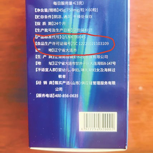 图一:辽康南极磷虾油的食品生产许可证编号。
