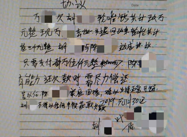 万某生前经营一家汽车修理店,长期从供应商胡某处购买汽修配件,累计拖欠货款90000元。万某去世后,胡某找到其妻子陈某索要欠款,陈某表示她虽然认可万某与胡某有生意往来,但对其具体金额并不清楚。双方经协商后达成一致,由陈某向胡某退回价值2000元货款的汽修配件,并出具一张特殊的欠条,欠条载明:“陈某仅需向胡某支付45000元。陈某在有能力偿还欠款时需尽力偿还,若难以维持正常开销,胡某不得以任何手段获取欠款。”