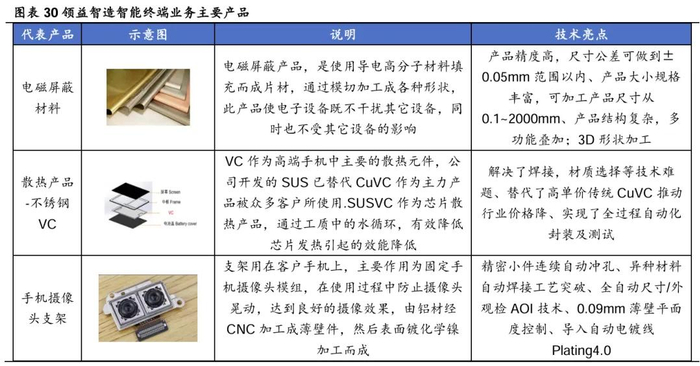 公司产品应用领域广泛,技术实力领先。公司以基础材料为突破,逐步向功能件、结构件、次组装、模组件、自动化等方向扩展与延伸,产品主要应用于AI终端设备及通讯、汽车、光伏储能等市场,应用覆盖游戏影音、工作办公、运动健康、家居生活等场景。公司掌握智能AOI检测系统及全自动产品检测反馈调节系统、高速精密冲压技术、冲压一件流、无人阳极线、CNC智能车间等多种先进核心制造技术及工艺,技术实力行业领先。