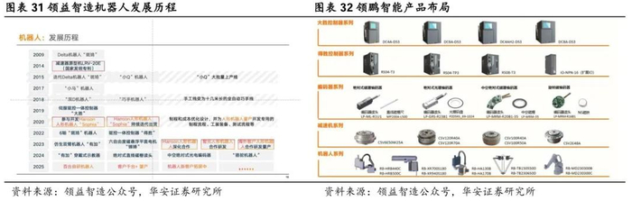 另外在机器人方面,公司子公司领鹏2009年开始研发工业机器人,随着产品的升级迭代,逐步开发RV减速器,运动控制器,伺服驱动器和PLC等核心部件。至今,领鹏在技术研发与创新领域共累积了400多项专利,并实现产品化形成了5个系列10款机器人,内含6个型号的自研减速器,和2个系列6款自研控制器。公司已为人形机器人客户提供头部模组、手部模组、无线充电模组、散热模组、模切结构件、金属结构件、注塑结构件、软包结构件等产品服务,并在人形机器人整机设计、灵巧手设计、量产测试等方面有成熟合作经验。