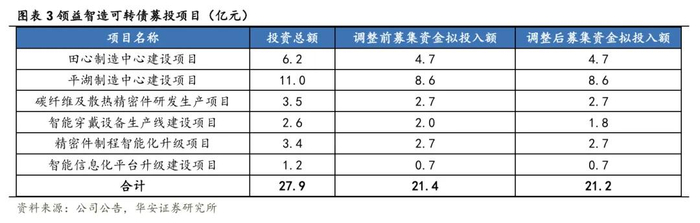 发行可转债蓄力研发与扩张。2024年,公司向不特定对象发行可转换公司债券募集资金总额为21.2亿元(调整后),扣除发行费用后的募集资金净额将投资于田心制造中心建设项目、平湖制造中心建设项目、碳纤维及散热精密件研发生产项目、智能穿戴设备生产线建设项目、精密件制程智能化升级项目、智能信息化平台升级建设项目。
