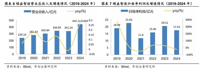 领益智造深耕精密制造领域近二十年,通过并购整合江粉磁材、赛尔康等公司构建了覆盖基础材料、精密零组件、核心器件与模组的全产业链能力。公司精密功能件产品市场份额及出货量已连续多年稳居全球消费电子市场领先地位,产品应用领域自消费电子进一步渗透新能源汽车、光伏、储能等新兴市场。受益AI终端等新产品放量,公司2024年实现营收422亿元,同比增长30%。受产品结构调整、新品盈利能力较弱等因素影响,2024年公司实现归母净利润16亿元,同比下降15%。