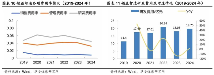 公司三费控制合理。2024年,公司销售费用率、管理费用率、研发费用率分别为1%、3%、4%,处于合理区间。从研发投入上看,2019-2024年公司研发费用由2019年的11亿元增至2023的20亿元,总体呈稳健增长态势,年复合增长率约达12%。