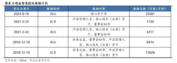 推出多期股权激励计划,彰显公司发展信心。公司自成立以来分别于2018年、2021年、2024年共开展5次股权激励计划,激励标的为期权或股票,主要激励对象为公司高管、核心技术及业务骨干人员,股权激励总数达1.5亿股,期权总数达3.6亿份。