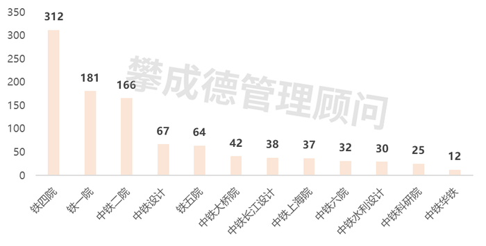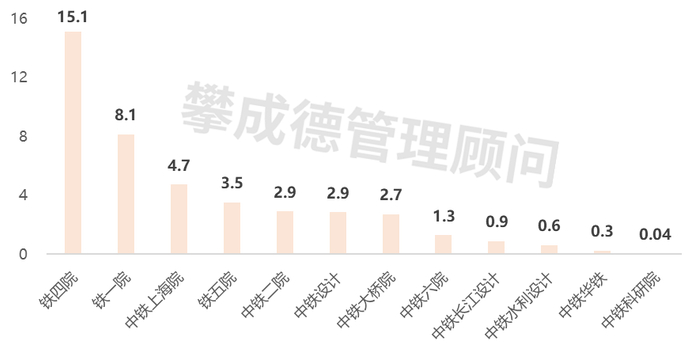 中国中铁8家勘察设计院的平均净资产为17亿元,中国铁建4家勘察设计院的平均净资产为72亿元。