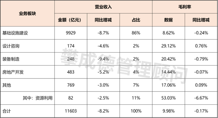 2024年,中国中铁实施有限相关多元化战略,其他业务板块营业收入合计769亿元,同比下降3%;毛利率为17.06%,同比增加0.09个百分点。