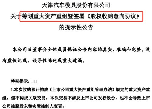 标的公司如何定价值得关注三年半前评估值已近22亿元天汽模在公告中称,本次交易尚处于筹划阶段,根据《股权收购意向协议》的约定,双方同意对标的公司进行财务、业务及法律方面的尽职调查。本次交易的标的公司最终股份数量、交易价格、支付安排等将以签署的正式协议为准。不过,同样来自东实股份招股书的披露,公司在2021年11月有过一次股权转让。具体来看,2021年11月22日,根据公开挂牌结果,十堰实业与十堰产投签署《产权交易合同》,约定十堰实业将东实有限(东实股份前身)10.3%的股权以2.24亿元的价格转让给十堰产投。根据银信评估出具《资产评估报告》,东实有限彼时归属于母公司所有者权益评估值为21.78亿元。而在2023年5月的上市计划中,东实股份抛出了高达17.98亿元的募资额,按25%的发行股份数测算,公司彼时的估值达到72亿元,较前述挂牌转让时的21.78亿元飙涨了2.3倍。如今时间又过去近两年,按道理东实股份的估值应该更高了。即便按照2021年11月的估值,此次天汽模收购50%股权的对价,或也要10亿元以上。但截至2024年三季度末,天汽模账上货币资金一共不到9亿元。天汽模也在公告中提醒,本次交易筹集资金可能面临外部环境制约、融资渠道不畅等不确定因素,可能出现因外部环境变化导致交易条件发生变化,进而导致交易终止的情况。天汽模的主营业务为汽车模具设计制造及整车工艺装备开发制造,2010年在深交所上市。