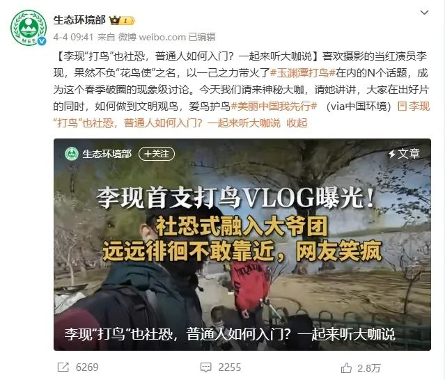 生态环境部的认可,不仅是对李现个人行为的肯定,也是对公众尤其是游客参与生态保护的一种鼓励。相较于传统环保宣传的刻板说教,李现“打鸟”这种沉浸式、场景化的传播,更易引发游客的情感共鸣与实践模仿。