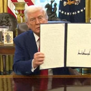 9日,特朗普签署旨在重振美国海运业的行政令 视频截图