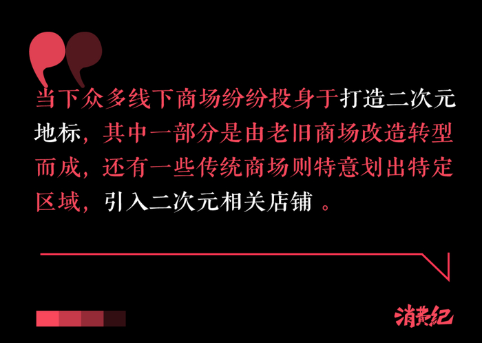 线下场景的消费潜力尤为显著,据消费纪了解,当下众多线下商场纷纷投身于打造二次元地标,北京王府井喜悦、上海百联ZX创趣场、西安小寨银泰......在国内 20 多个一二线城市中,已经成功塑造出 60 余个核心商圈。这些地标大多坐落于人流如织的繁华商圈,其中一部分是由老旧商场改造转型而成,还有一些传统商场则特意划出特定区域,引入二次元相关店铺 。