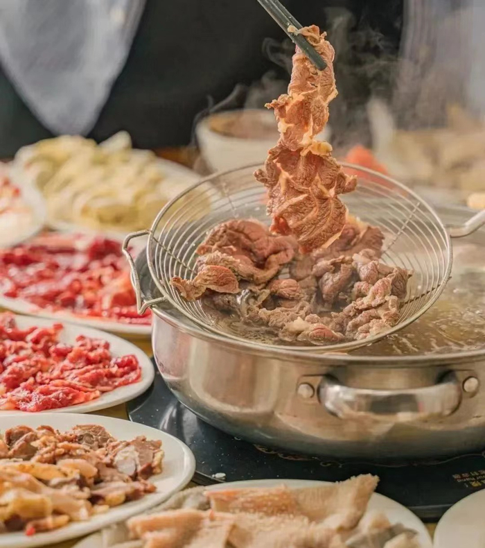 ● 潮汕牛肉火锅:鲜嫩弹牙,一口入魂。