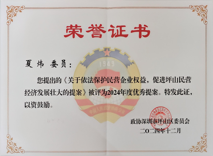 作为市、区两级的政协常委、集团董事长夏炜连续多年深耕低空经济领域,并积极建言献策。2024年6月,《人民政协报》刊发文章《低空经济加速“起飞”需发展与安全并重》,报道其对低空经济的发展分析与未来展望。同年,夏炜董事长《关于依法保护民营企业权益,促进坪山民营经济发展壮大的提案》获评2024年度坪山区优秀提案。两篇提案一脉相承,既聚焦民营经济"发展密码",又着眼新兴产业战略布局,彰显出夏炜董事长将实践智慧转化为政策建议的履职担当,展现了新时代委员履职尽责的使命风采,为坪山区争当先行示范贡献“多彩方案”。