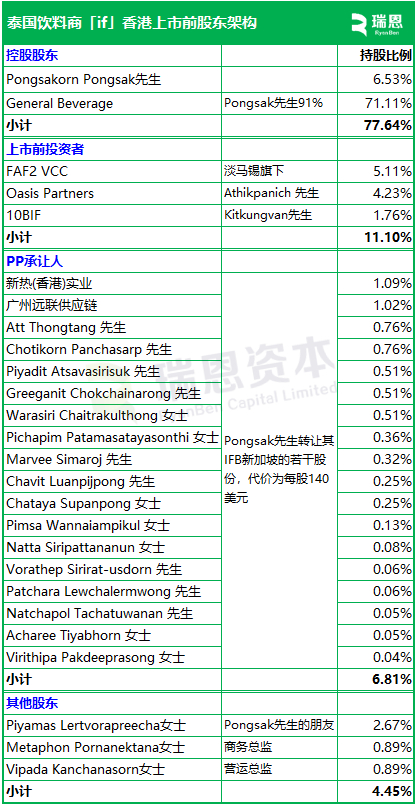Pongsakorn Pongsak先生,直接持股77.64%,其拥有91%的General Beverage,持股71.11%, Pongsak先生合计持股77.64%。