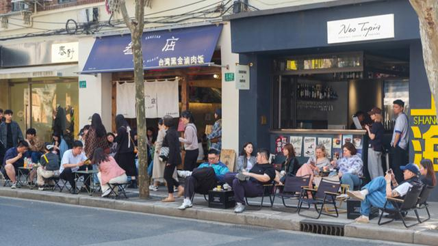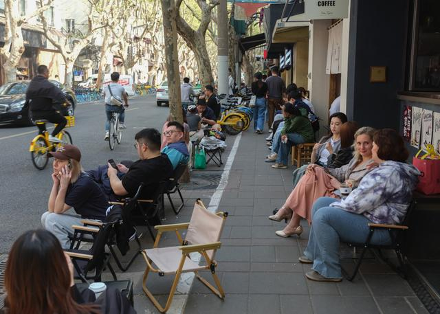夜色渐浓,精致文艺的“巨富长”街区褪去白日的矜持,咖啡店摇身变为酒吧。乘着温柔月色与街灯光影,马路上的年轻人或站或蹲,或直接坐在街沿小酌一杯,又是一种别样“松弛感”。