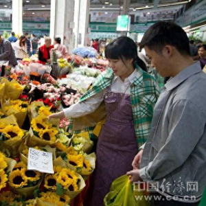 3月30日,云南昆明斗南花卉市场,顾客在挑选鲜花。(中国经济网记者 张晶/摄)