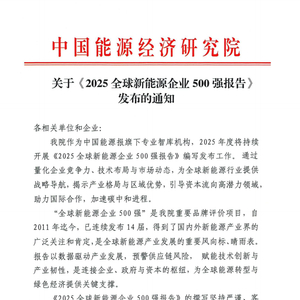 我院作为中国能源报旗下专业智库机构,2025年度将持续开展《2025全球新能源企业500强报告》编写发布工作。通过量化企业竞争力、技术布局与市场动态,为全球新能源行业提供战略导航,揭示产业格局与区域优势,引导资本流向高潜力领域,助力国际合作,加速碳中和进程。