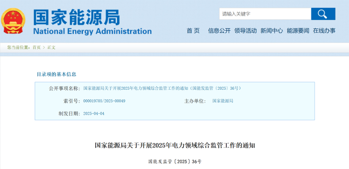 国家能源局关于开展2025年电力领域综合监管工作的通知