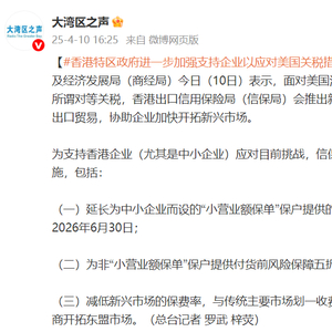 香港特区政府商务及经济发展局(商经局)今日(10日)表示,面对美国滥施关税包括进一步调高所谓对等关税,香港出口信用保险局(信保局)会推出新一轮支持措施,支持香港出口贸易,协助企业加快开拓新兴市场。