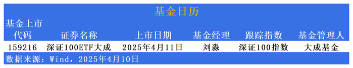 ETF发行市场方面,深证100ETF大成(159216)明日上市