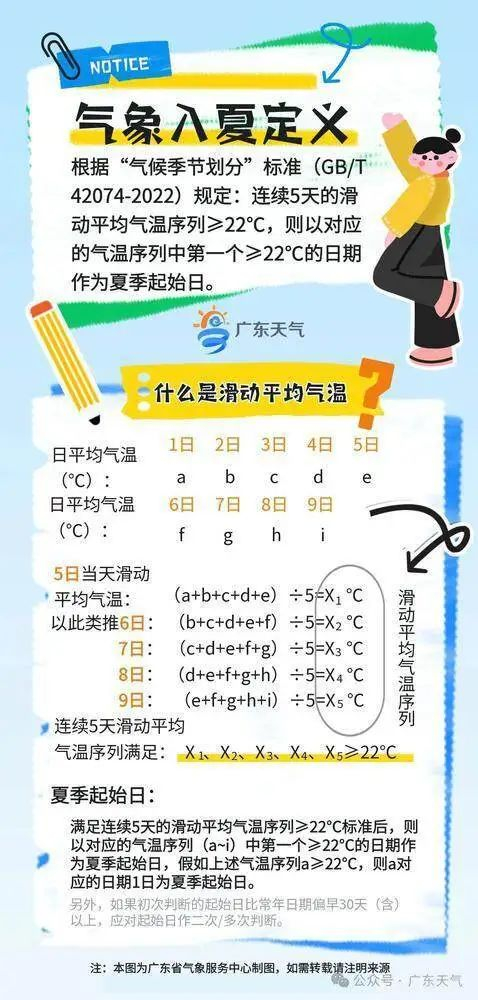 “气象入夏”定义。广东省气象服务中心制图