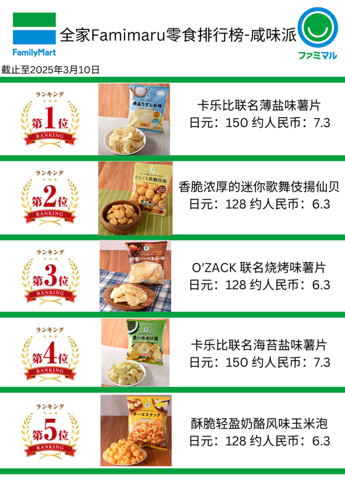 咸味派:卡乐比联名薄盐味薯片、香脆浓厚的迷你歌舞伎摄仙贝等。