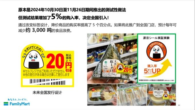 全家从2021年就开始推行“Famima生态折扣”系统,而“哭哭贴纸”是其中最新的一项优化策略。测试数据显示,该贴纸让临期食品的购买率提升了5%,并将在全国推广,预计每年可减少3000吨食品浪费,进一步推动环保目标。