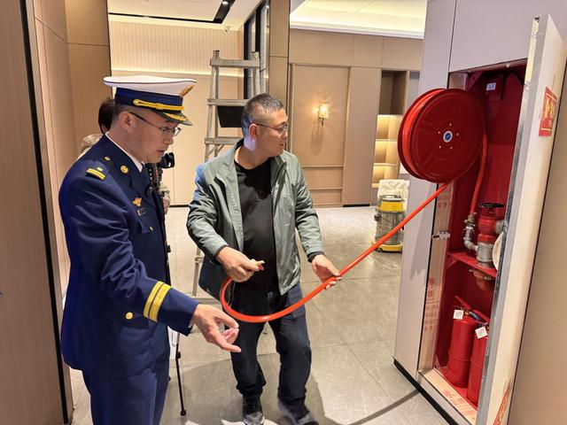 “一旦发生火情怎么办?”“人员如何疏散?”“消防水喉怎么使用?”......在酒店大堂,张世青又依次检查了前台、保洁、保安等不同岗位酒店工作人员对消防知识和消防技能的掌握情况。个别员工对岗位职责和消防设施的使用还有所欠缺,“开业前还需要加强人员的消防培训。”张世青提醒酒店负责人。