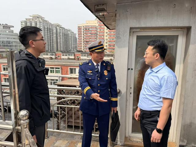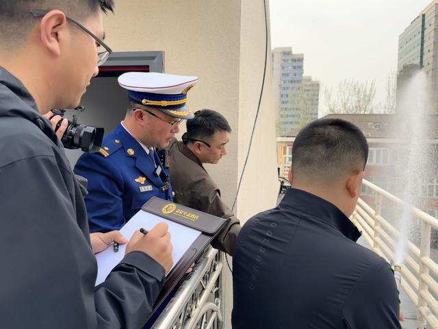 紧急出口的数量、喷淋和消火栓的水压、地毯的耐火性能、人员消防技能的掌握……检查中,张世青和马彬涵沿着疏散楼道,逐层向上检查到了顶层,其间,不断就一些技术细节沟通交流。在楼顶,两人紧盯工作人员手中的水枪,并读取记录上面的压力值。