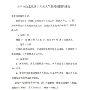 沕沕水景区临时闭园通告