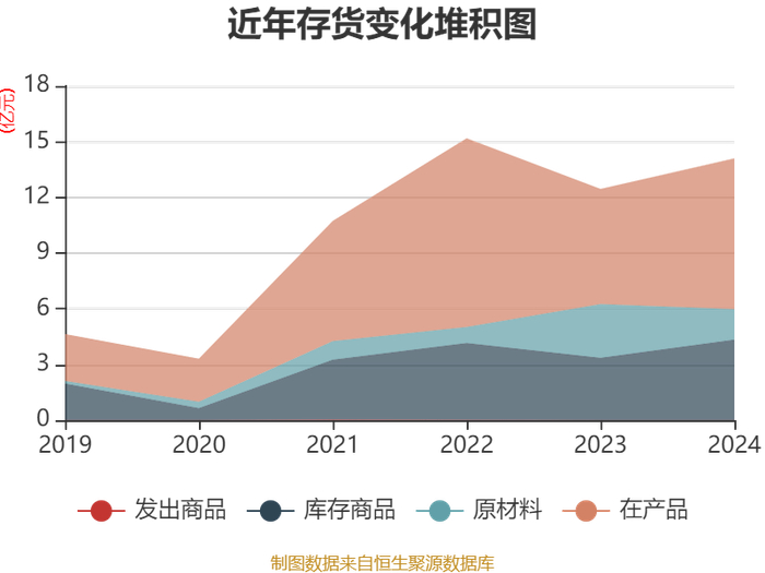 从存货变动来看,截至2024年末,公司存货账面价值为14.1亿元,占净资产的22.04%,较上年末增加1.65亿元。其中,存货跌价准备为2.24亿元,计提比例为13.7%。