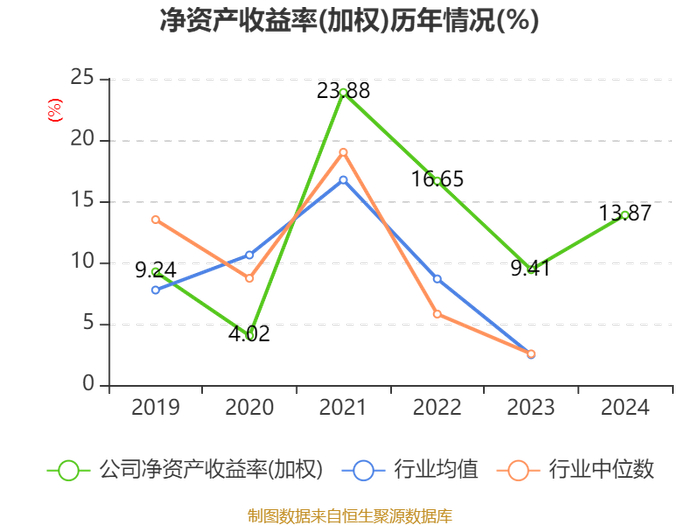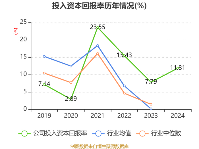 数据显示,2024年公司加权平均净资产收益率为13.87%,较上年同期上升4.46个百分点。公司2024年投入资本回报率为11.81%,较上年同期上升4.02个百分点。