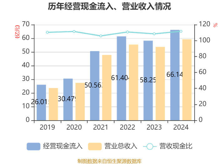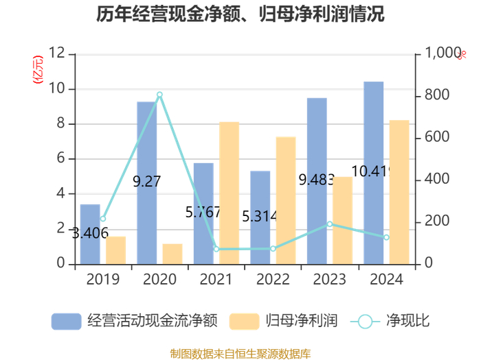 截至2024年,公司经营活动现金流净额为10.42亿元,同比增长9.86%;筹资活动现金流净额1747.17万元,同比增加1.46亿元;投资活动现金流净额-10.29亿元,上年同期为-11.74亿元。