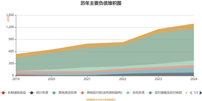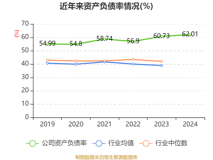 负债重大变化方面,截至2024年末,公司应付票据及应付账款较上年末增加3.83%,占公司总资产比重下降2.05个百分点;其他流动负债较上年末增加40.57%,占公司总资产比重上升1.33个百分点;合同负债较上年末增加37.41%,占公司总资产比重上升1.06个百分点;长期应付款合计较上年末增加157.92%,占公司总资产比重上升0.68个百分点。