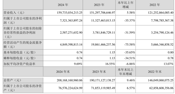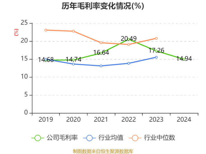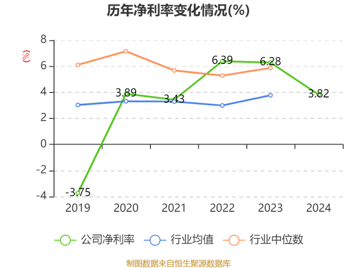数据显示,2024年公司加权平均净资产收益率为9.69%,较上年同期下降6.86个百分点。公司2024年投入资本回报率为6.6%,较上年同期下降5.47个百分点。