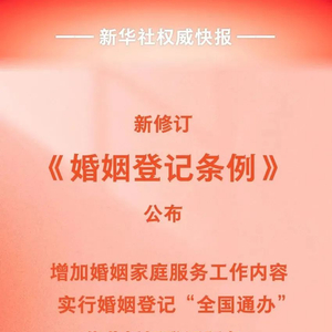 4月9日,新修订的《婚姻登记条例》公布,自2025年5月10日起施行。