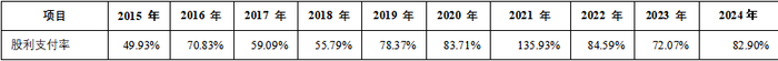 股利支付率:公司2015年~2024年的股利支付率为49.93%~135.93%,可以看出公司的分红率还是比较高的,尽管这几年收益有所下滑,但公司的现金流还是很不错的。