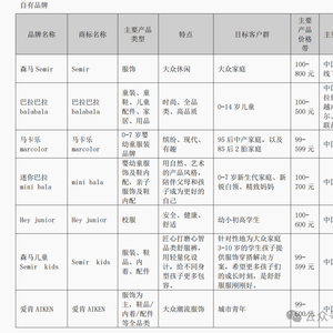 森马服饰是一家以虚拟经营为特色,以休闲服饰、儿童服饰为主导产品的企业集团,旗下拥有以森马品牌为代表的成人休闲服饰和以巴拉巴拉品牌为代表的儿童服饰两大品牌集群。森马品牌创立于1996年,定位“舒服体验、品质生活”,为千万家庭提供高质价比、跨场景、舒适百搭的产品和一站式购物体验,传递自信、舒服、时尚的生活方式。巴拉巴拉品牌于2002年创立,倡导专业、时尚、活力,面向0-14岁儿童消费群体,产品定位在中等收入小康之家。