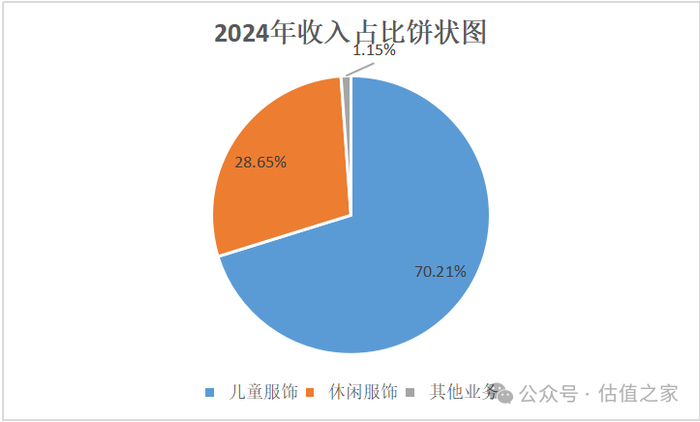 根据森马服饰2024年年报数据,按产品分类:儿童服饰销售收入102.68亿元,收入占比70.21%;休闲服饰销售收入41.9亿元,收入占比28.65%;其他业务收入1.68亿元,收入占比1.15%。公司内销收入占比99.45%,境外收入占比0.55%,公司收入主要集中在境内。