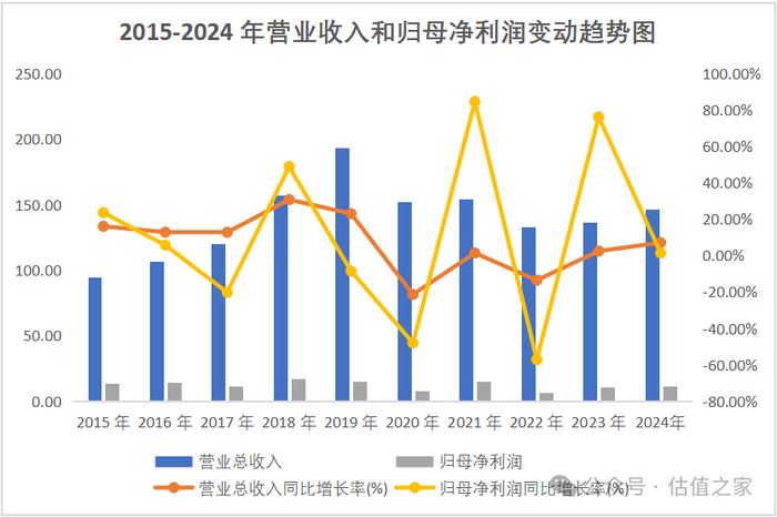 2015年到2024年末,资产总额从116.55亿元增长64%至191.01亿元;归母净资产从92.35亿元增长28%至118.30亿元。