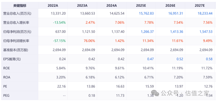 根据机构一致性预测,2025~2027年的营业收入分别为157.63亿元、169.51亿元、182.33亿元,归母净利润分别为12.66亿元、14.13亿元和15.48亿元,PE分别为15.59、13.97、12.76。机构对其未来还是较为看好的,预测的收入和归母净利润均系稳健增长。